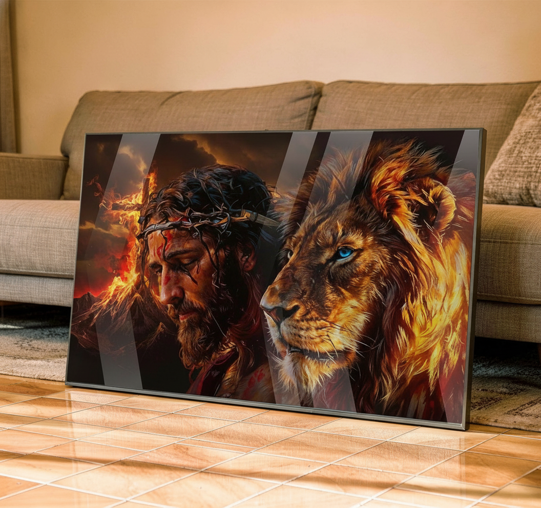 Quadro Jesus e Leão – Arte Religiosa Poder e Fé em Alumínio Quadro Jesus e Leão – Arte Religiosa Poder e Fé em Alumínio